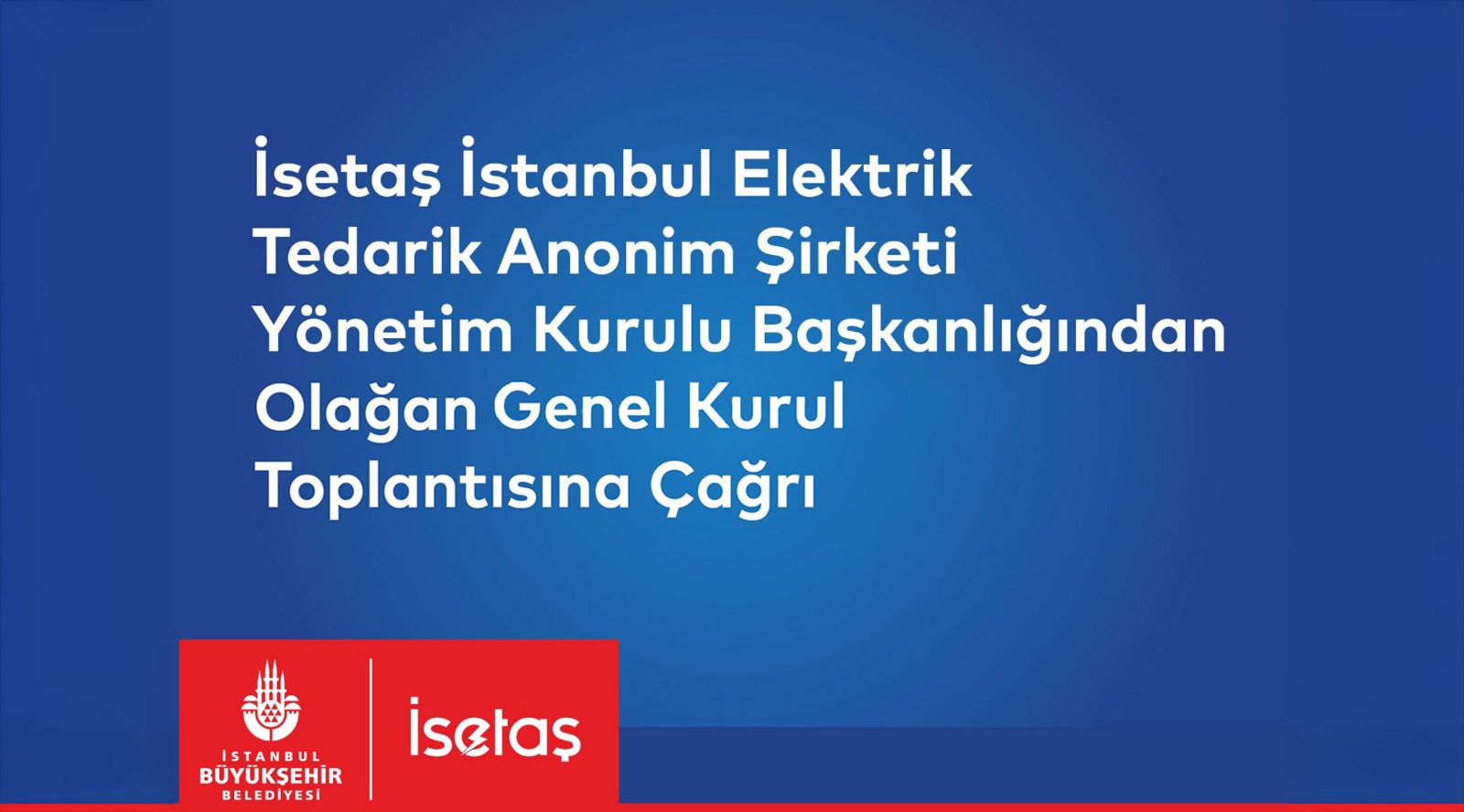 Hissedarı bulunduğumuz İSTANBUL ELEKTRİK TEDARİK ANONİM ŞİRKETİ’nin 21/04/2026 tarihinde saat 15:00’da Osmaniye Mahallesi Koşuyolu Bulvarı No:1 Kat:5 34146 Bakırköy/İSTANBUL adresindeki İstanbul Büyükşehir Belediyesi İştirakler Koordinasyon Müdürlüğü Toplantı Salonunda yapılacak olan Olağan Genel Kurul